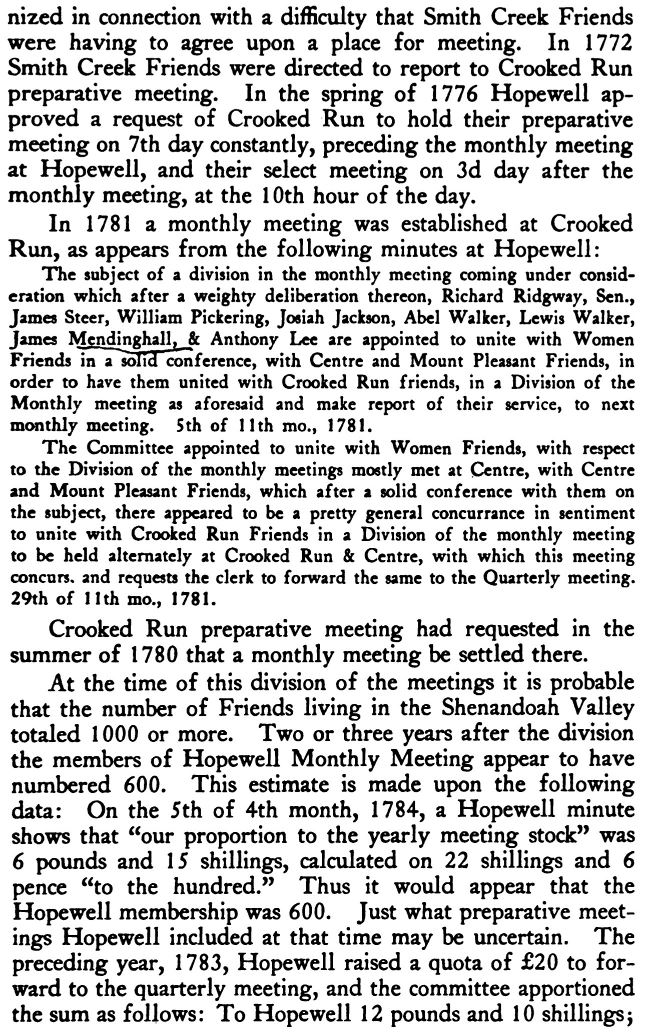 Below are some historical sketches of the meeting from "Hopewell Friends History" and William Wade Hinshaw's "Encyclopedia of American Quaker Genealogy".