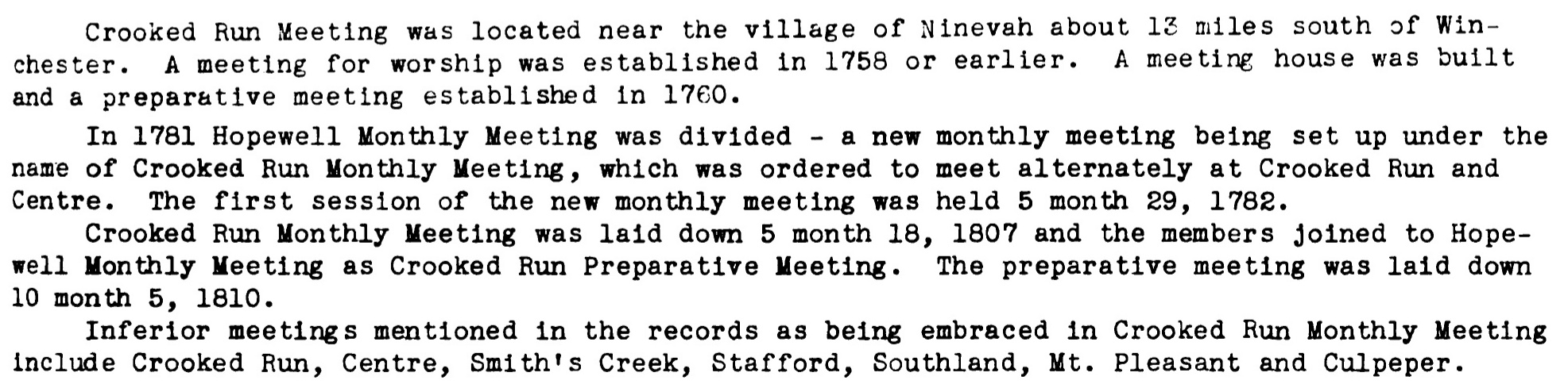 [Home] [Quaker Meetings in the Lower Shenandoah Valley and elsewhere]Crooked Run Monthly Meeting