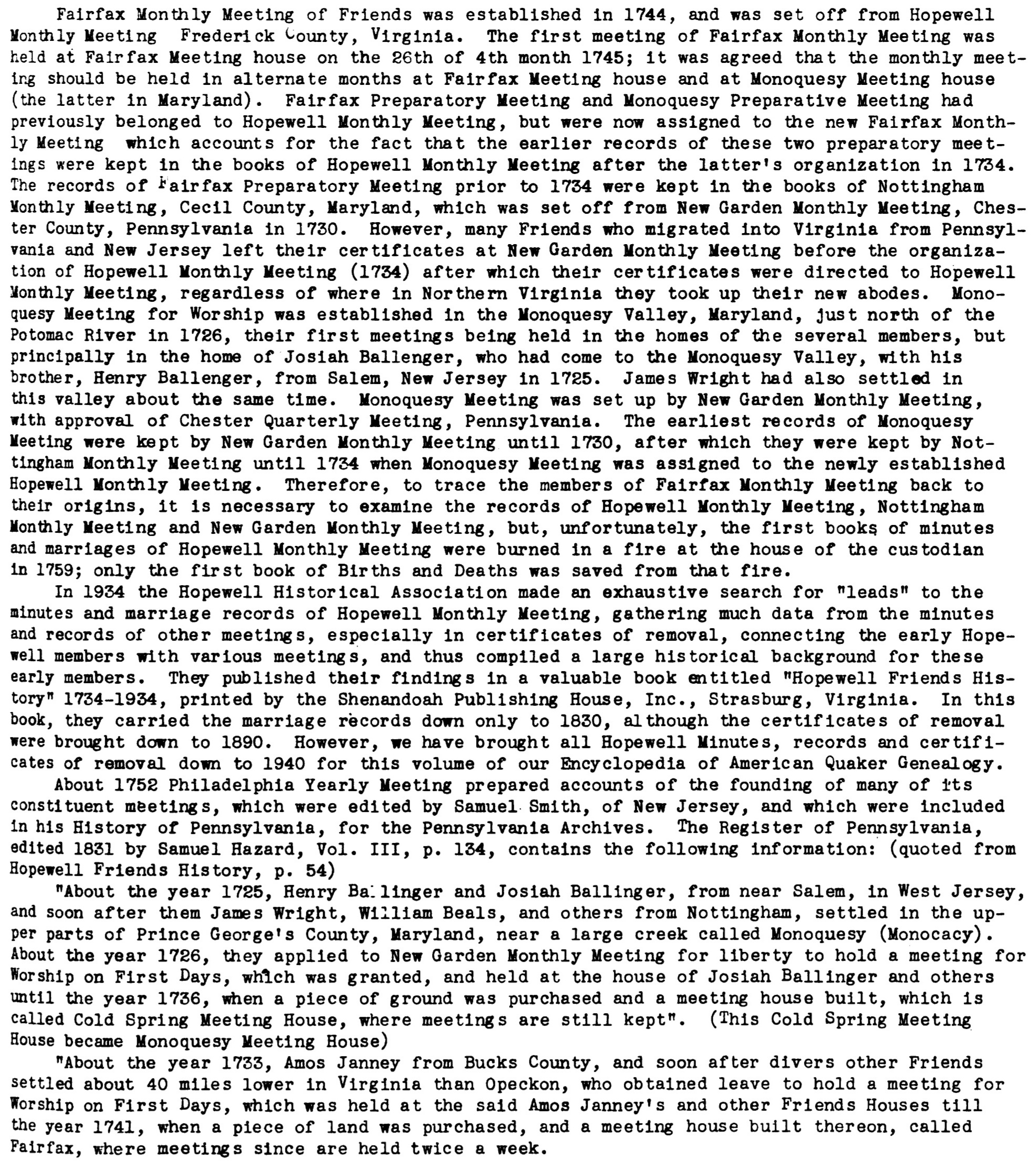 Encyclopedia of American Quaker Genealogyp. 463-466; Volume VI (Fairfax Monthly Meeting, Loudoun County, Virginia)