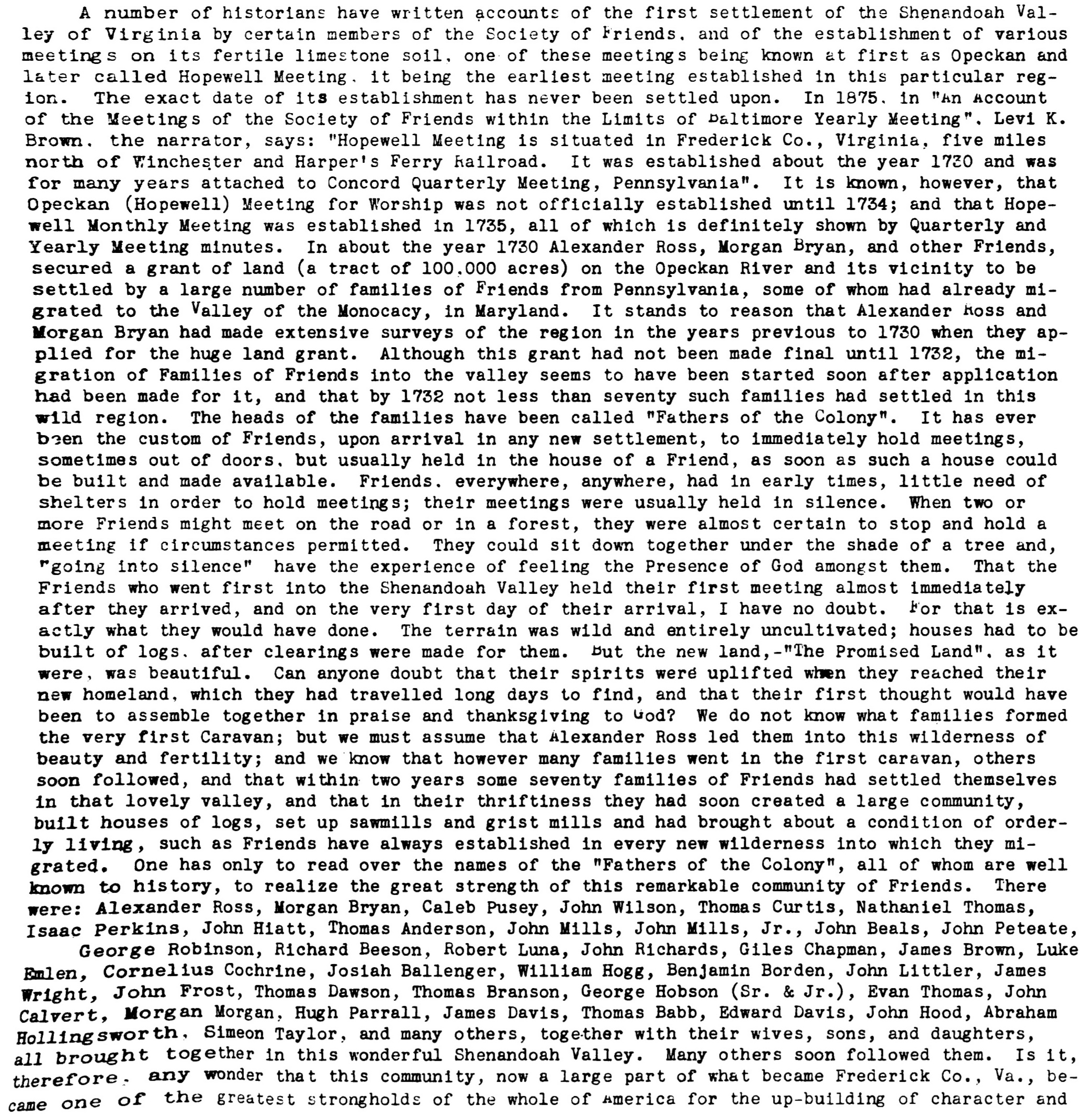 Encyclopedia of American Quaker Genealogyp. 357-360; Volume VI (Hopewell Monthly Meeting (Sometimes called Opeckan in early records), Frederick County, Virginia)