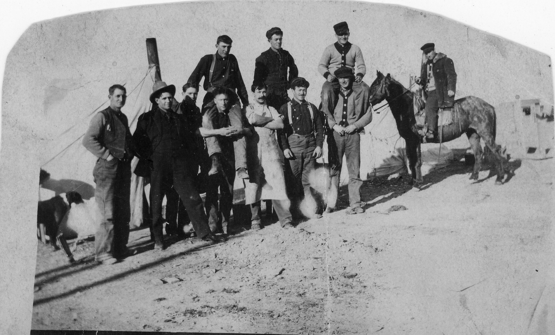 On the lower right is LeHew McKay holding another person on his shoulders. This photo was likely taken around 1909 since he is wearing the same sweater he has on in the picture at the top of this page. LeHew spent some time in Montana as a young man likely working on a ranch or farm. The others pictured here are most likely people he worked with.